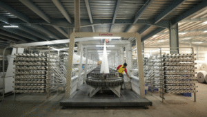 High-performance looms interlace warp and weft tapes to create stable woven fabrics in various weave structures — forming the foundation for durable, high-strength bags.