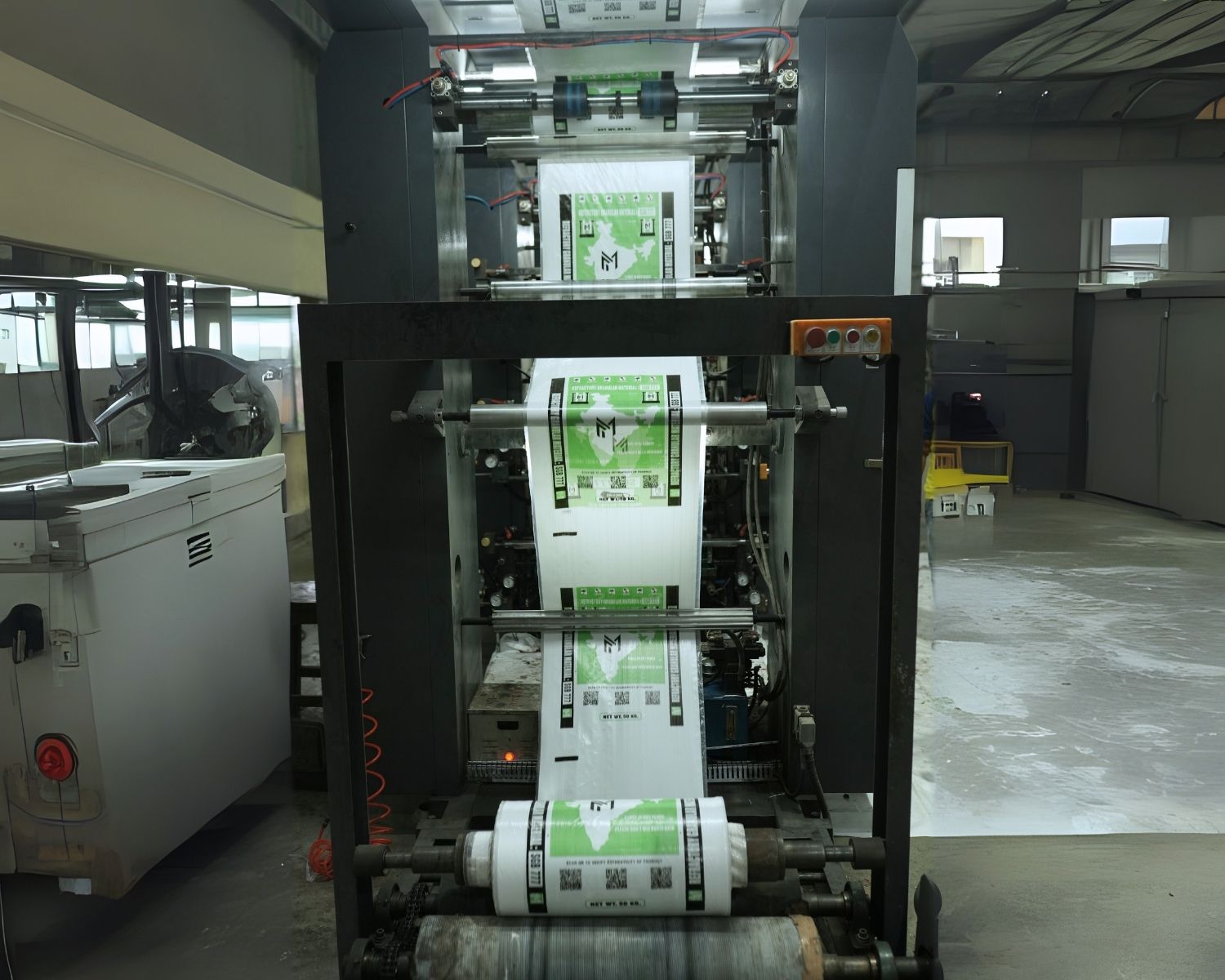 Equipped with advanced technology, this machine delivers high-quality printing of logos, designs, and product information on both laminated and unlaminated woven fabrics.